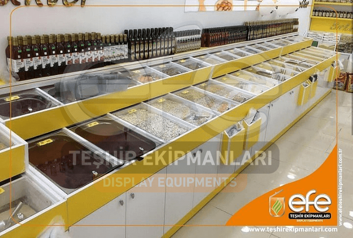 Efe Teşhir Ekipmanları olarak pleksi teşhir ekipmanları, ahşap teşhir ekipmanları, standlar başta olmak üzere dökme gıda teşhiri için gerekli tüm ekipmanların üretim ve satışını gerçekleştirmekteyiz.